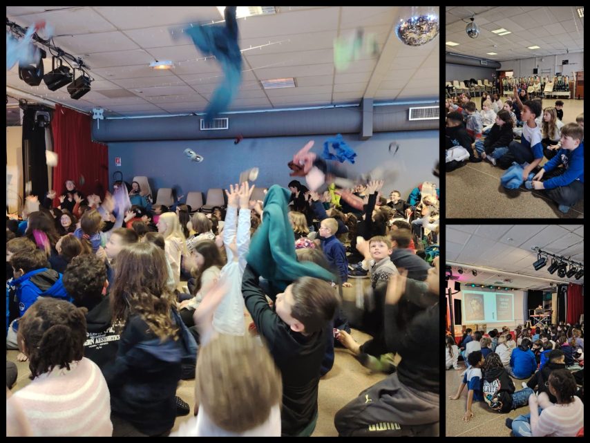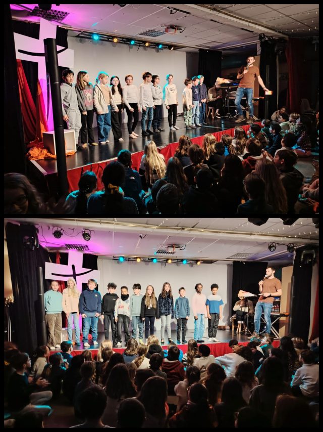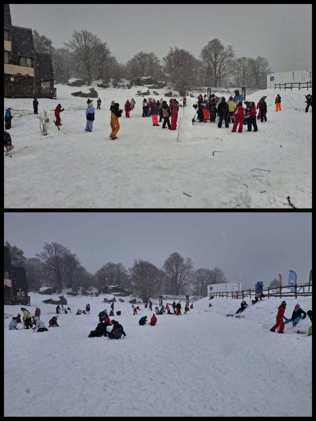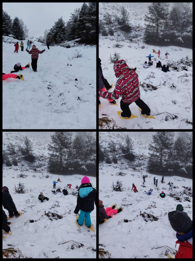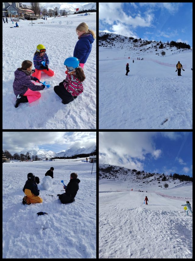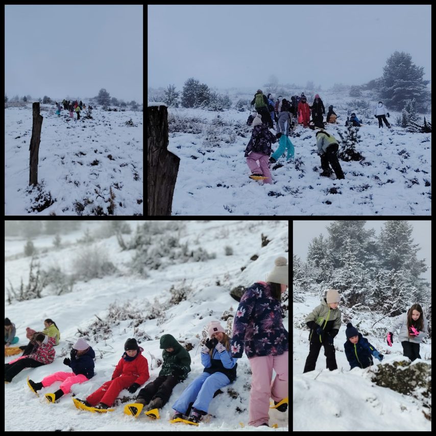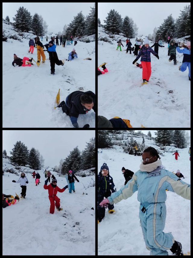 Vendredi, nous avons fait une randonnée en raquettes sous la neige avec Claude. Nous avons pu observer des traces d’animaux et Claude nous a présentés différents animaux vivants dans les Pyrénées. Nous nous sommes amusés à courir et glisser dans la neige avec nos raquettes. C’était génial. L’après midi, nous avons fait un concours de bonhomme de neige qui s’est terminé par une bataille de boules de neige. Ensuite, nous sommes passés par la boutique souvenirs avant de rejoindre le Père Mathieu pour une célébration. Notre séjour s’est terminé par un moment festif très attendu, la boom !