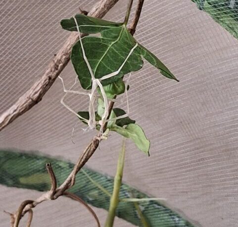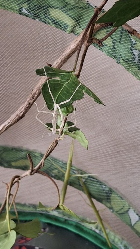 Lors de cette séance, nous avons abordé la croissance du phasme, et nous avons donc évoqué le fait qu’ils vont muer à plusieurs reprises. Nous avions mis de côté une mue, et c’était le bon moment pour l’observer.