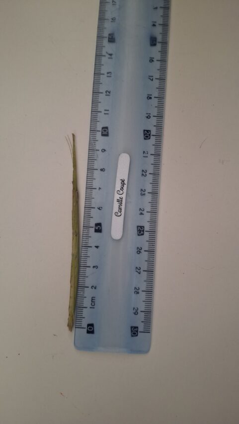 Nous avons pris le temps de les mesurer. Le phasme, apeuré, s’est recroquevillé ; il ressemblait vraiment à une petit brindille.